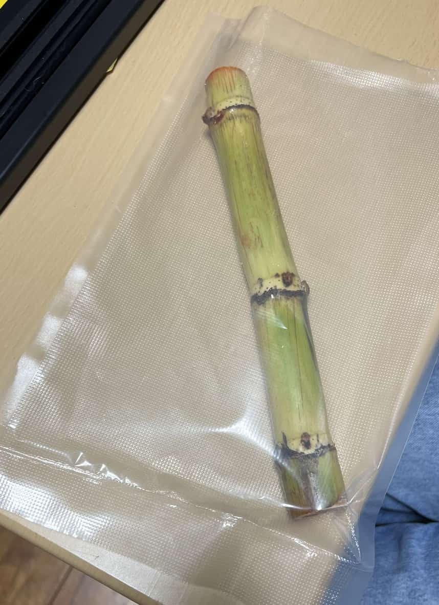 最近、ひょんなことからサトウキビが2本手に入って、どれくらいの糖分が摂れるか実験をはじめてから、がぜん楽しくなってきました。板倉先生の宿題を手がけるチャンスが来たかもしれません。
