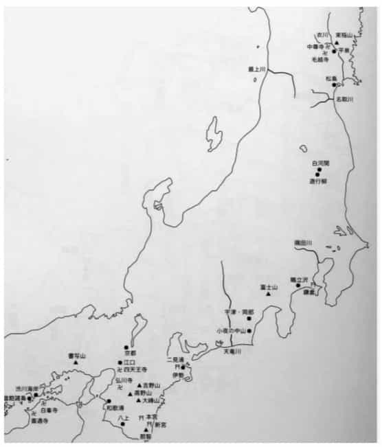 いろいろ探していると「五島美術館」の資料に西行の旅の場所をプロットした資料がありました。