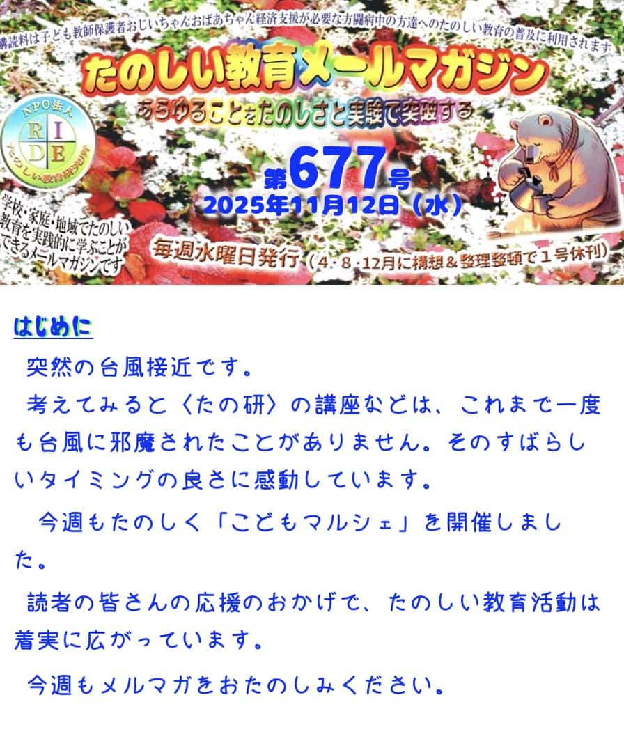 たのしい教育を学びたい方、〈たの研〉を支援したい方はぜひたのしい教育メールマガジンをご購読ください。