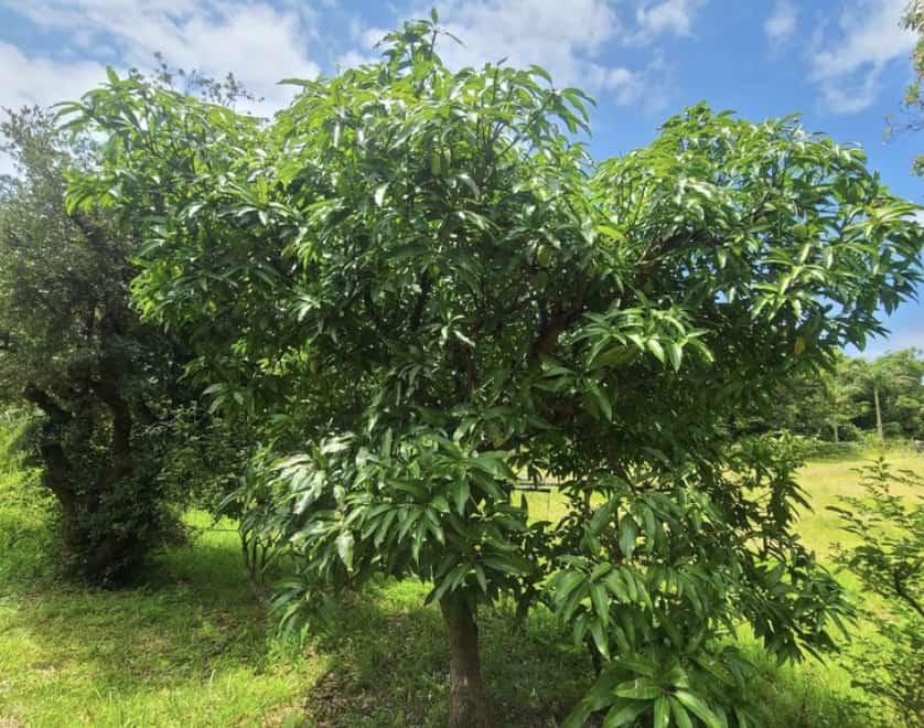 ちなみにマンゴの木はこれ、栽培しているタイプは2mくらいで剪定してあるのだけど、自然のままに成長させていくと巨木になります。