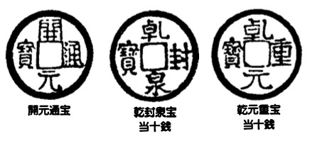 また758~9年になって「乾元重宝」という二種類の大型コインを作って、それを「旧銭の10倍、および50倍に流通させる」と宣言しているのです。