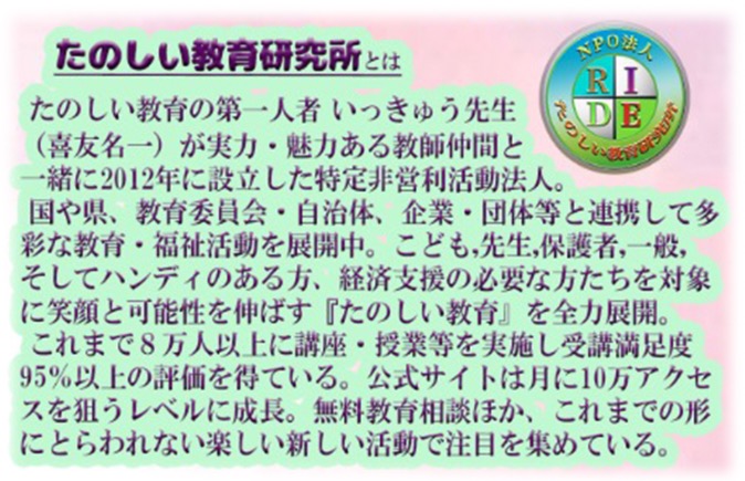 ② たのしい教育を本格的に学ぶ〈たのしい教育メールマガジン-週刊/有料〉を購読しませんか! たのしい教育の実践方法から発想法、映画の章ほか充実した内容です。講座・教材等の割引もあります(紹介サイトが開きます)