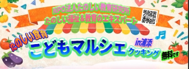 こどもマルシェクッキングは栄養士&学校の先生と一緒に作った〈たのしい食育ブログラム〉を子ども&大人一緒に作っておいしく味わう大人気のワークショップ(無料)です。体験して家に帰るときっと家族にも作ってあげたくなりますよ。対象は小学生以上です。親子、家族でお申し込み下さい。子どもだけの参加も保護者からの申込みが必要です。好評の〈たの研〉のプログラムのプレゼントもあります。