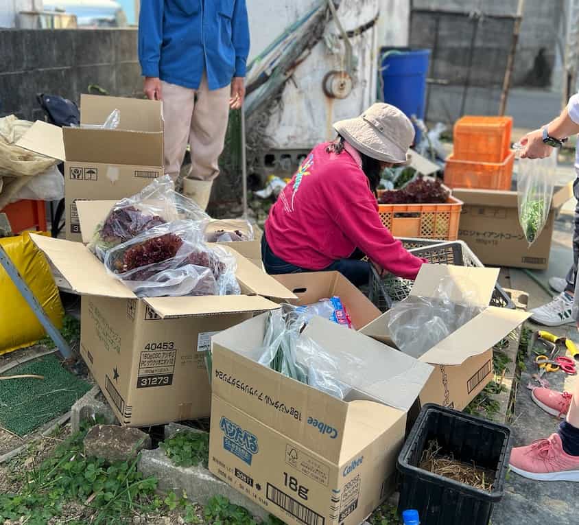 楽しく作業している間にたくさんの野菜が入った箱が並んでいきました。
