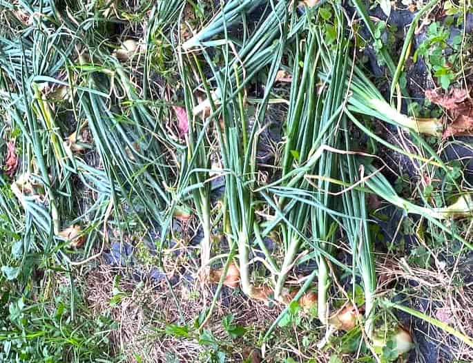 そばの野菜たちは全部普通に育っているので、誰かがイタズラで玉ねぎだけ折ったというのは考えにくいことです。