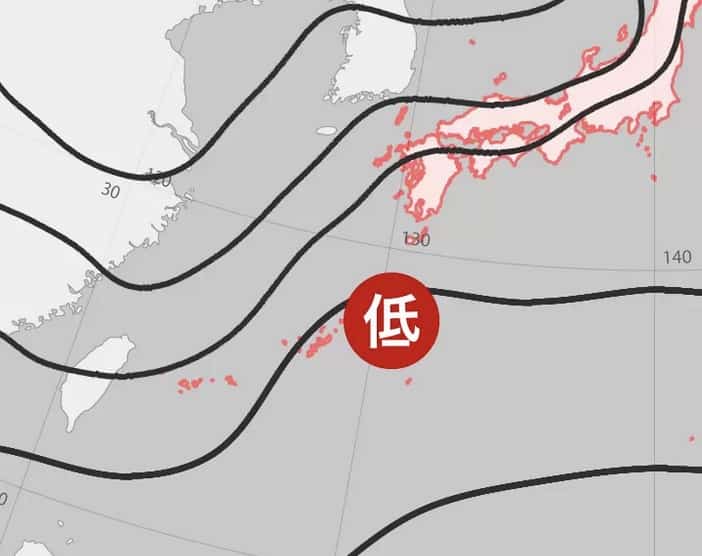 その時の天気図がこれです、沖縄のすぐ近くに低気圧があることがわかります。