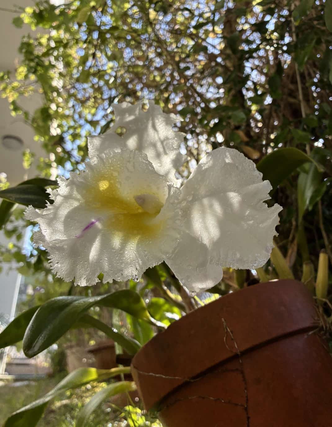 分けてもらったランは庭の木の間に置いておきました。