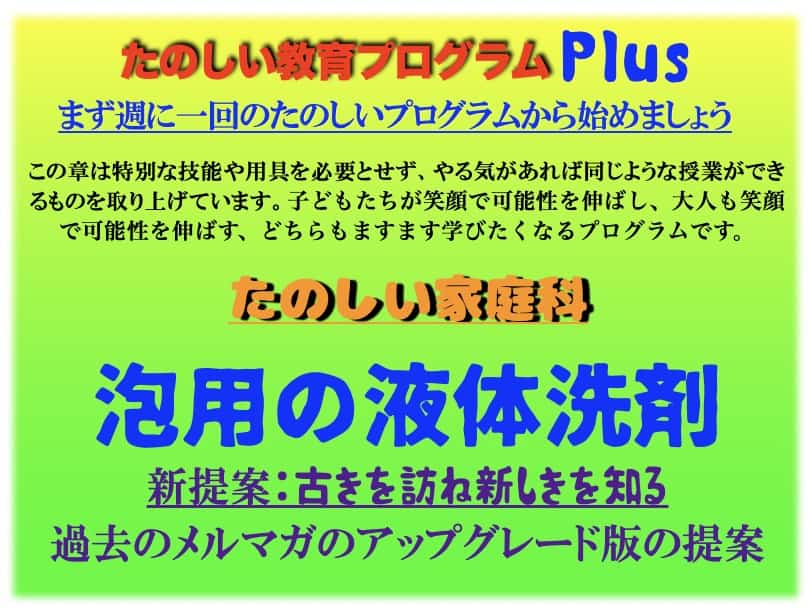 2年前の『自由研究まつり』のあと、S先生が「以前から使っていた古いタイプの洗剤をポンプに入れても泡立たないみたい」と話していました。