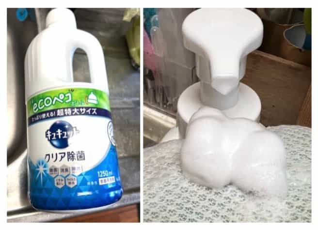 まず泡立てポンプの泡を見てください。《たのしい教育ラボ》で使っている食器用洗剤キュキュットです。