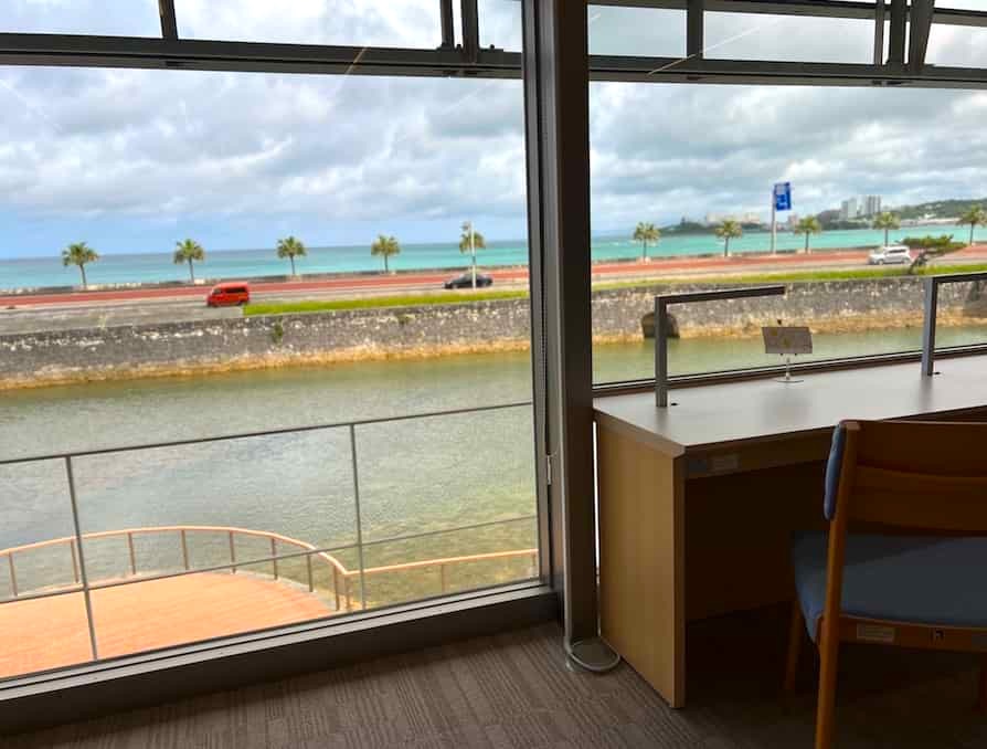 だとしたら、恩納村の図書館は日本一眺めのよい図書館と言ってよいと思います。