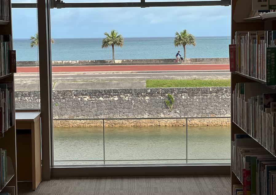 かつて勤めていた恩納村には窓の外に海と空を臨むステキな図書館があります。