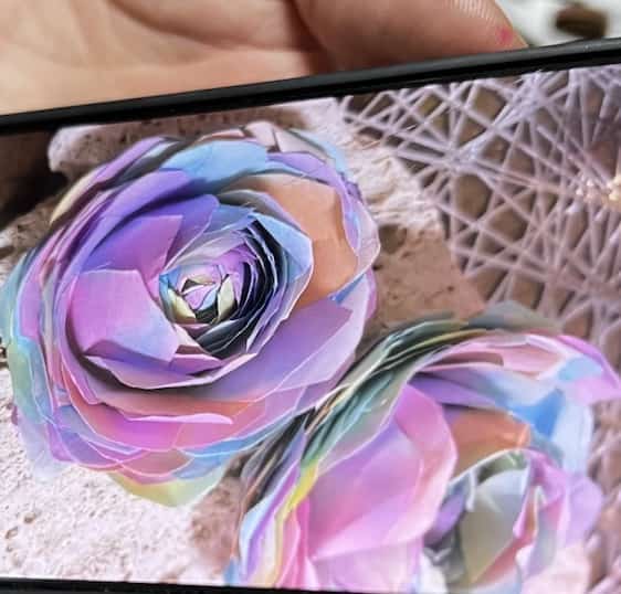 これは〈たのしい教育エンジョイカフェ〉でミムラ先生がとりあげた「おりぞめコサージュ」です、作品は手元になく、写真を見せてくれました。