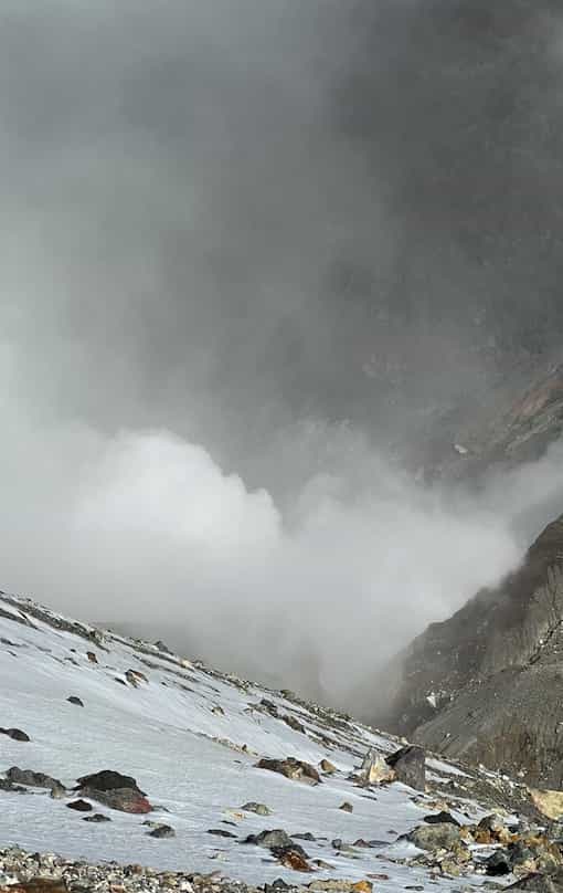 嬉しいことに、噴火している場所を覗き込める位置まで近づくことができました、数ヶ月前に〈活動が安定した〉という判断になったとのこと…